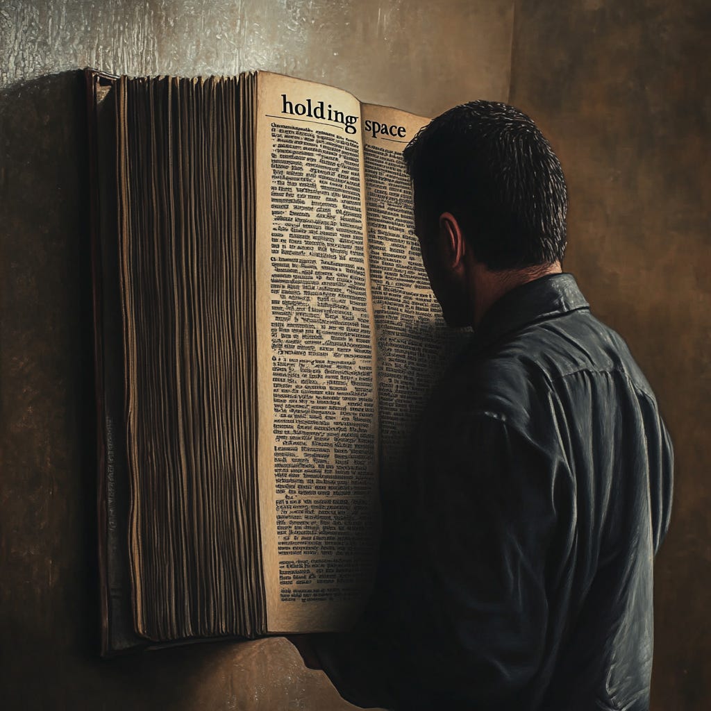 Holding space => Active listening. Here’s the 2015 blog post that popularized the term “holding space.” It’s 1,850 words about how to present with someone when they’re going through a tough time. For a lot of women, it resonated so hard it popularized a whole new term. For a lot of men, it’s wordy and vague. When I hear men teach the exact same concept, they use a different term: “active listening,” which is listening and asking clarifying questions. For men, it doesn’t need to get more complicated than that.